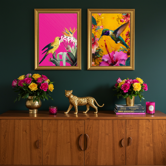 Tropical Hummingbird Duo β Bold Maximalist Print Set of 2