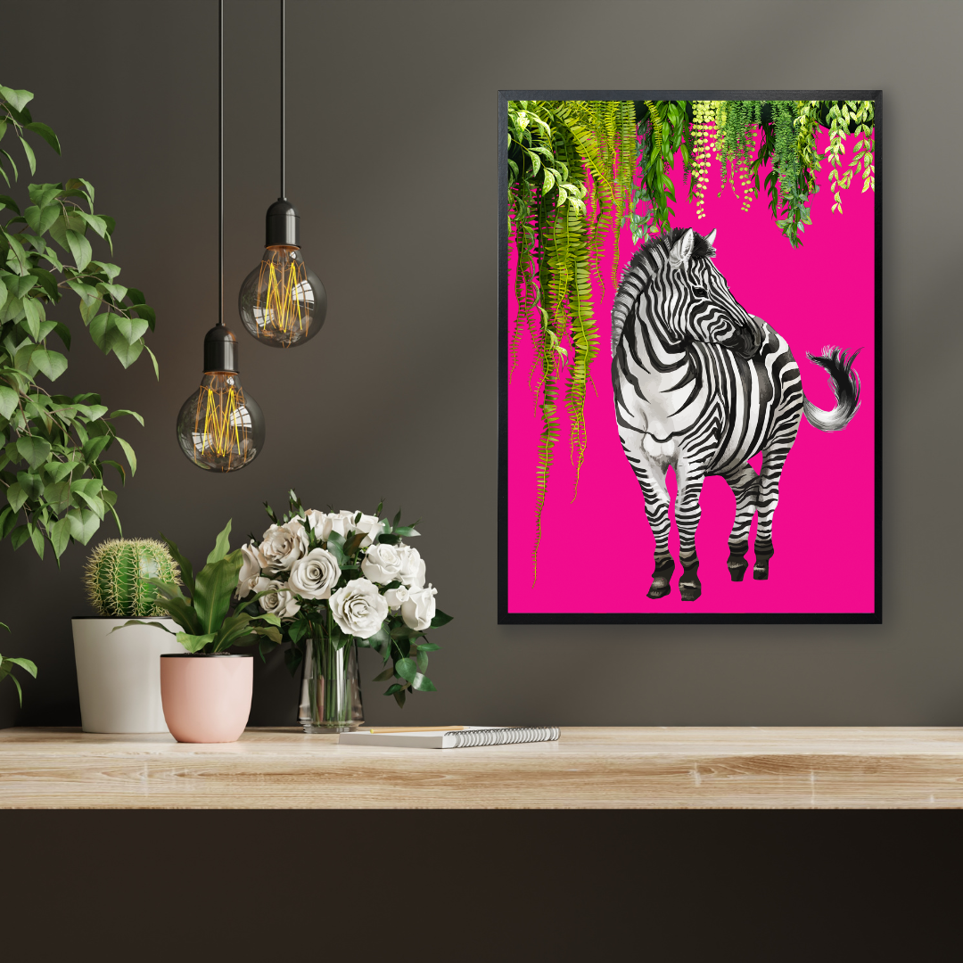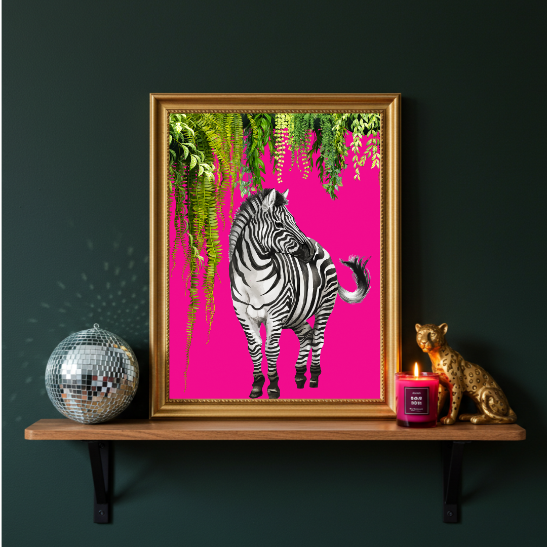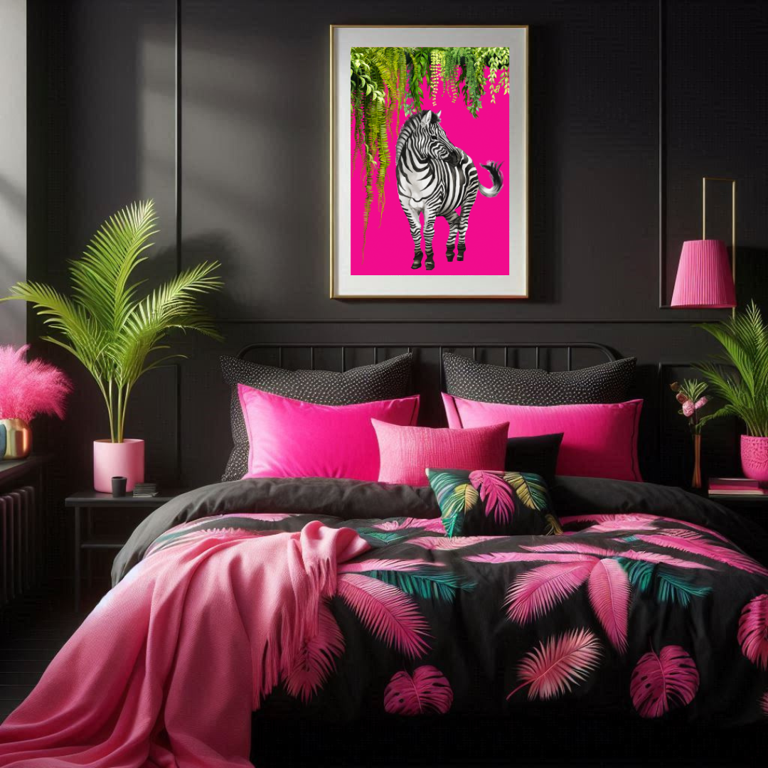 Bold Jungle Zebra – Maximalist Hot Pink Wall Art