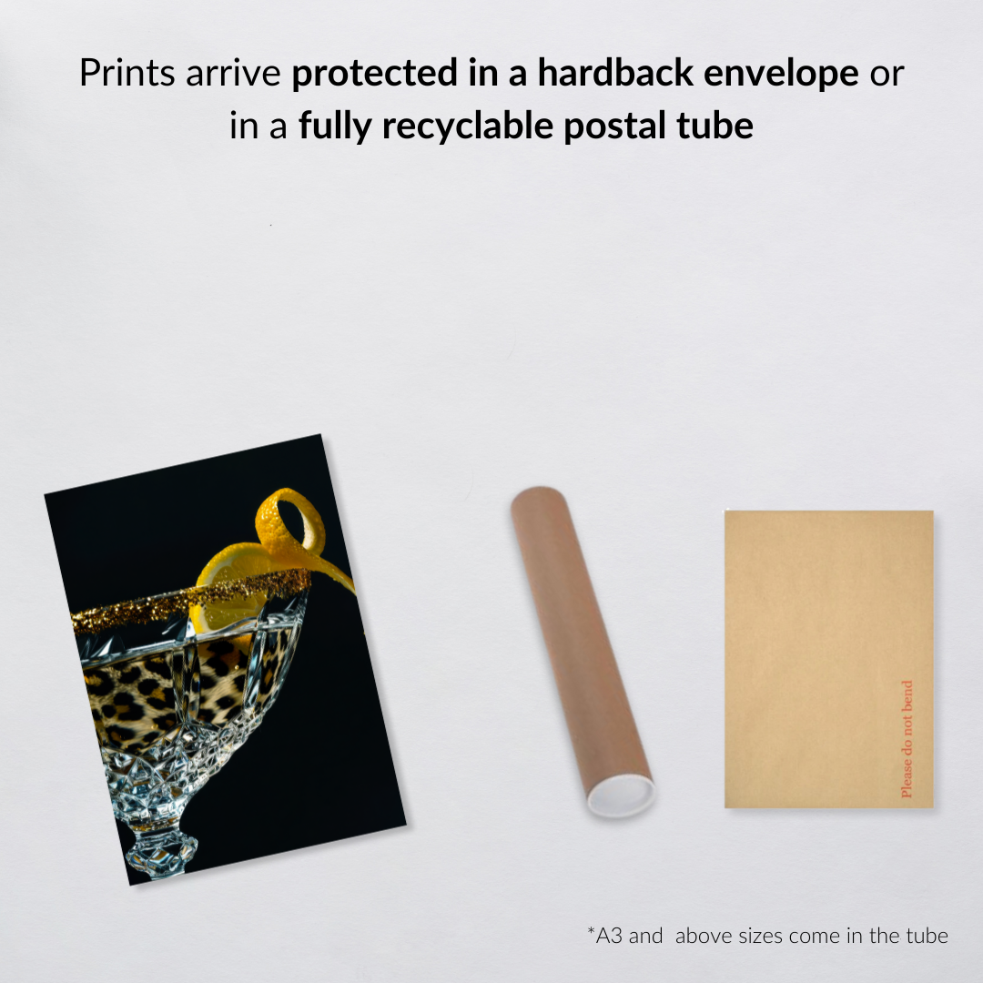 • Printed using a professional large format printer with top quality colour vibrancy pigment inks & 250gsm satin high quality poster paper that ensures a vivid, sharp and quality prints that will last a lifetime behind glass.