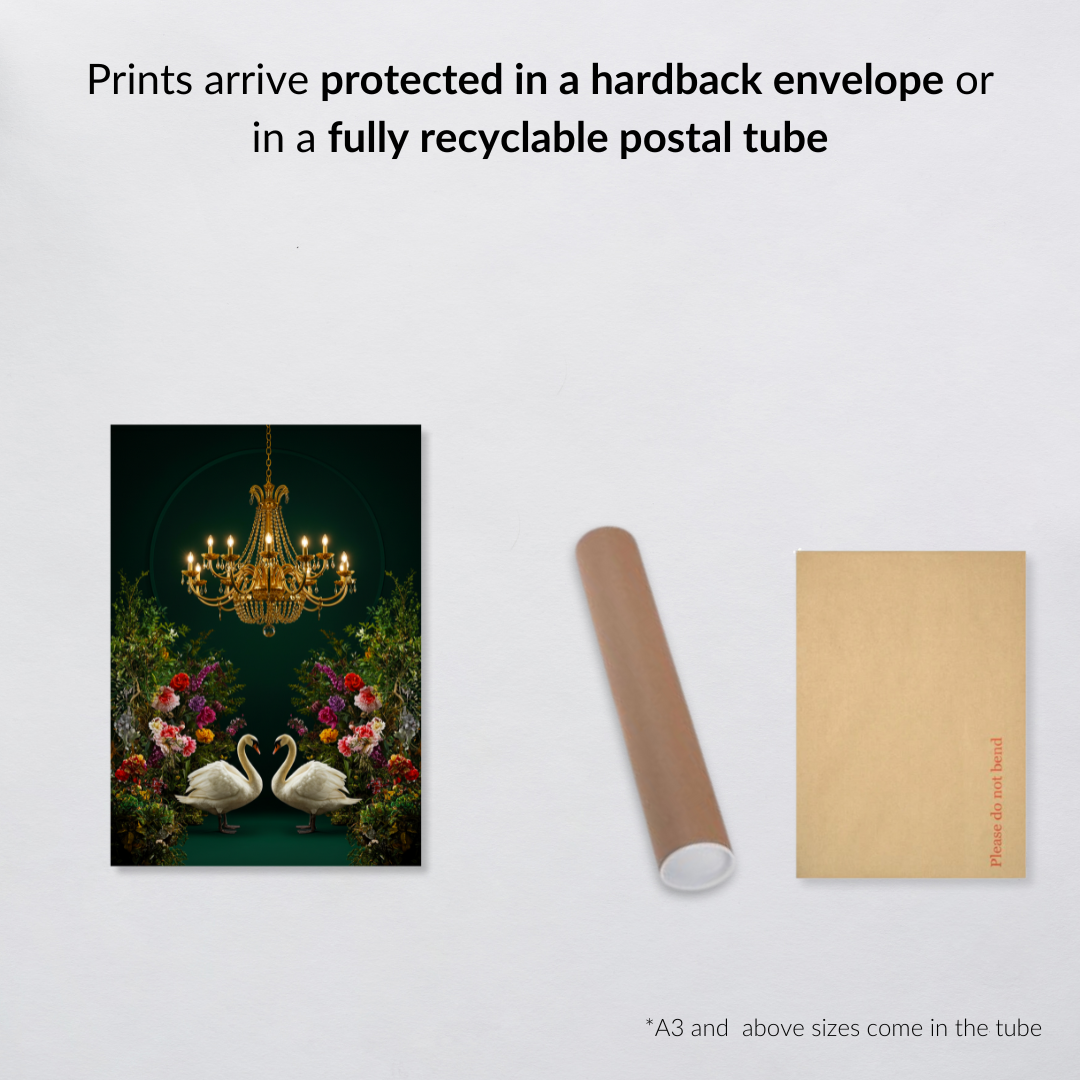 • Printed using a professional large format printer with top quality colour vibrancy pigment inks & 250gsm satin high quality poster paper that ensures a vivid, sharp and quality prints that will last a lifetime behind glass.