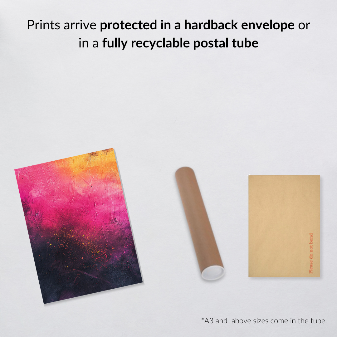 • Printed using a professional large format printer with top quality colour vibrancy pigment inks & 250gsm satin high quality poster paper that ensures a vivid, sharp and quality prints that will last a lifetime behind glass.